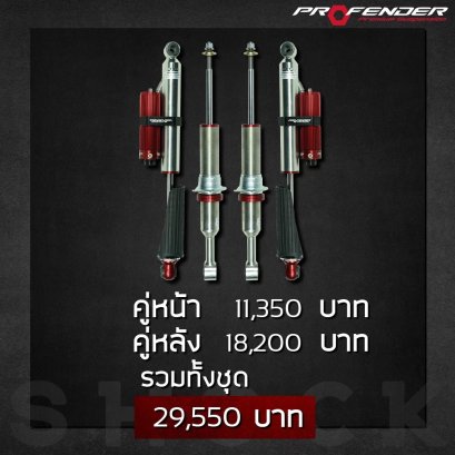โช๊คอัพ Profender แบบปรับได้ 4 ระดับ โช๊คอัพแก๊สกึ่งน้ำมัน ระบบกระบอกสองชั้น (Twintube) ขนาดแกน 18 มม. ขนาดลูกสูบ 35 มม. และตัวกระบอกสูบ 57 มม. ตัวแกนยังมีความแข็งแรงมากกว่าปกติเนื่องจากผ่านกระบวนการชุบด้วย HARD CHROME