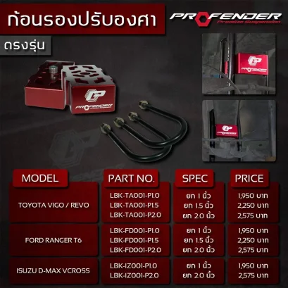 โช๊คอัพMonotube 2.0 ยี่ห้อProfender หน้า 2.0 หลัง Piggyback ปรับได้ 8 ระดับ สำหรับรถ D-Max(ตัวเตี้ย)02-11,D-Max12up,All New D-Max Vigo,Revo,Triton,NewRanger,BT50Pro,All New BT50,colorado - แกนหน้า 20 มิลลิเมตร หลัง 16 มิลลิเมตร - ระบบโมโนมิก กระบอกชั้นเดียว แยกห้องระหว่างน้ำมันและแก๊สออกจากกันอย่างชัดเจน ระบบไนโตรเจนแรงดันสูง 100-200 PSI - ลูกสูบที่ใหญ่ 46 มิลลิเมตร จะช่วยเพิ่มความตอบสนองได้มากขึ้น ปรีบแต่งเพื่อให้มีความนุ่มและหนึบ ทำให้สามารถควบคุมการขับขี่ได้ดี แม้ขับด้วยความเร็วสูง - ตัวหน้าออกแบบเป็นรุ่นสตัดปรับเกลียว ปรับความสูงได้ตั้งแต่สแตนดาร์ด-ยกสูง 2 นิ้วหรือ สแตนดาร์ด-โหลด2นิ้ว - ตัวหลังสามารถติดตั้งแบบกลับหัว หรือUpsize Down - เป็นโช๊คระบบเปิด สามารถเปิดซ่อมได้ ตลอดอายุการใช้งาน ประหยัดค่าใช้จ่ายในการซ่อมบำรุง โช๊คอัพ รับประกัน 1 ปี 20,000 km.